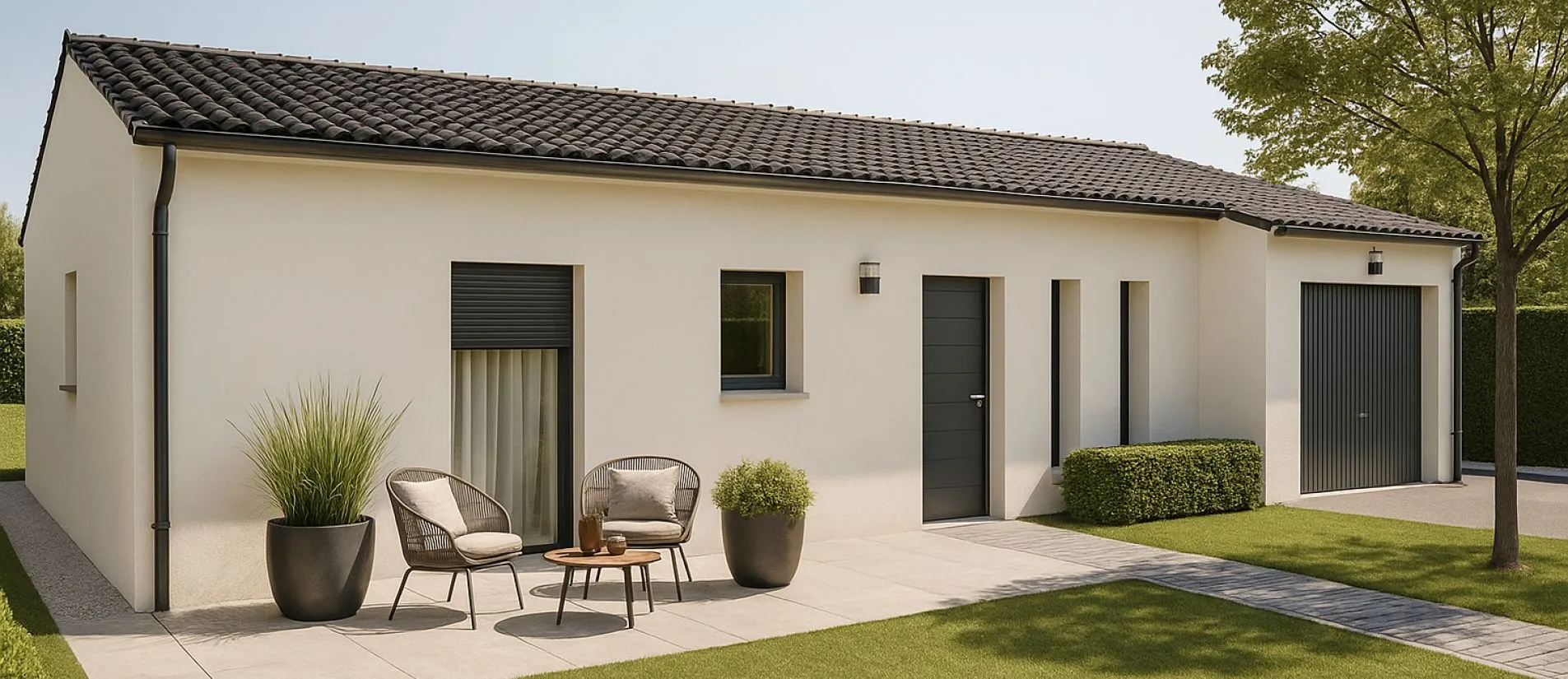 Raccordements (VRD), assainissement, viabilisation et frais de notaire compris. Votre maison répondra à la réglementation de la RE 2020.