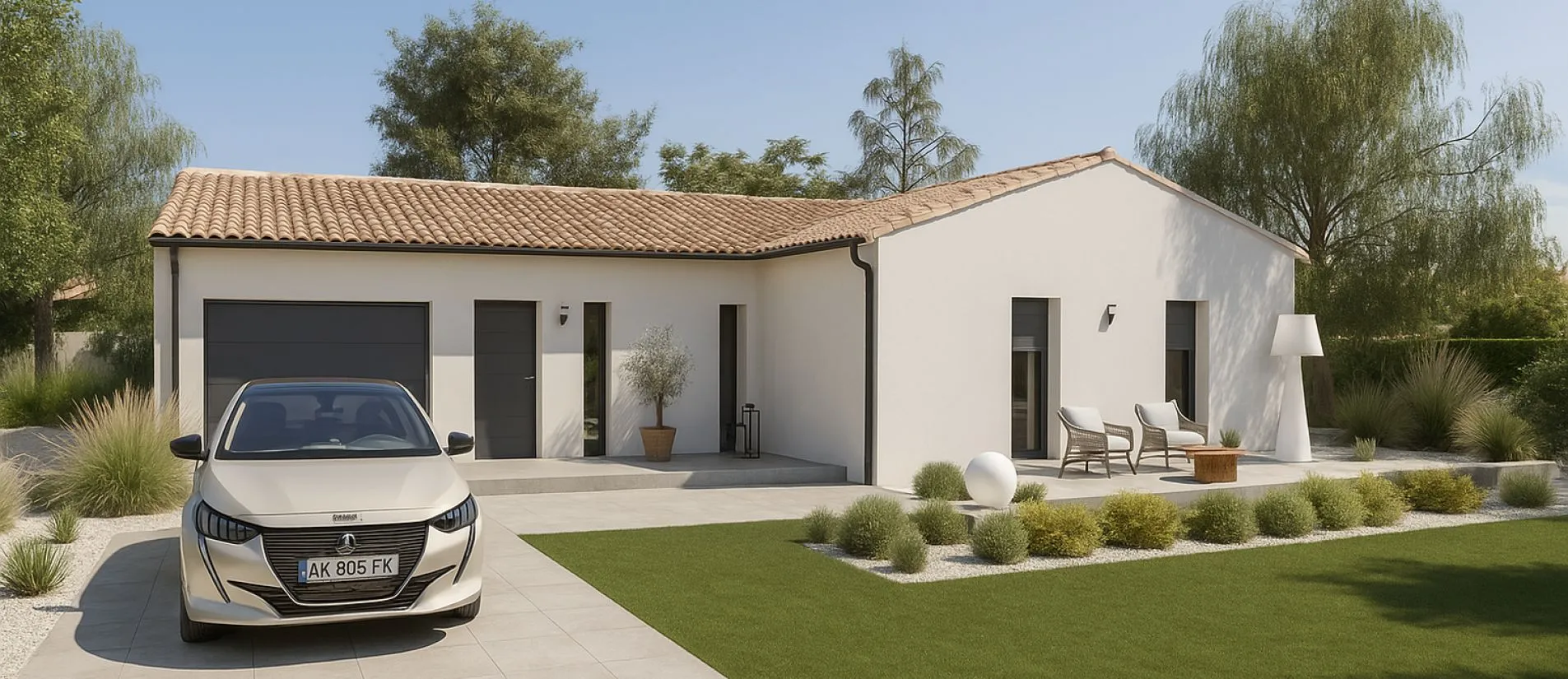 Prix avec assurance dommages-ouvrage non comprise, raccordements non compris, viabilisation comprise, assainissement non compris, frais de notaire compris, taxes comprises, frais divers compris. Terrain sélectionné et vu pour vous sous réserve de disponibilité et au prix indiqué par notre partenaire foncier. Visuels non contractuels.