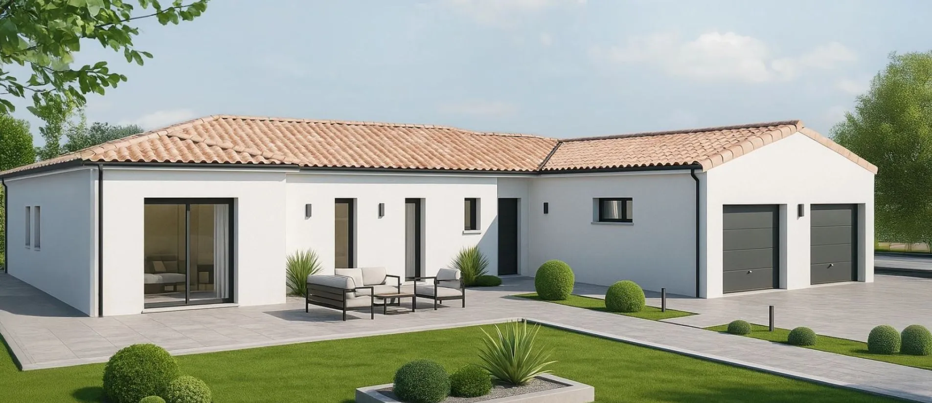 Découvrez notre maison sur-mesure à La Chapelle-Moulière (86), un modèle de plain-pied spacieux de 182,72 m² qui combine charme traditionnel et confort moderne. Cette construction sur-mesure dispose de 4 chambres lumineuses et d’un double garage, idéale pour une famille recherchant espace et praticité. Ce projet sur-mesure met en avant tout notre savoir-faire de constructeur de maisons neuves dans la Vienne (86).